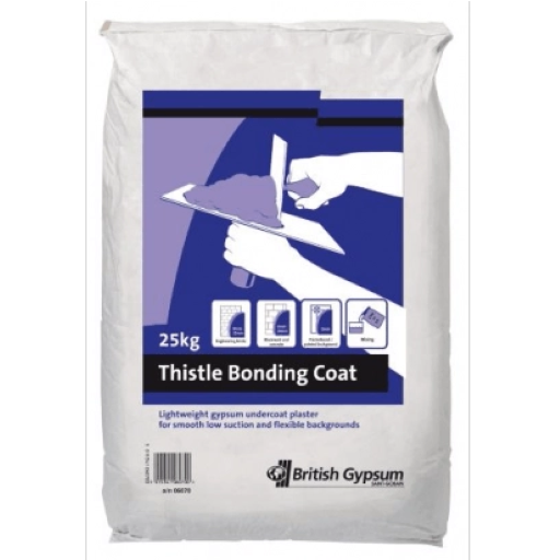 After adding a final coat of any of the Thistle finish plasters, Thistle BondingCoat provides a base coat that is both smooth and inert. It generates a high-quality surface to internal walls and roofs that acts as a stable and long-lasting base for ornamental finishes. British Gypsum Thistle BondingCoat is available for nationwide delivery in bags of 25 kg each.