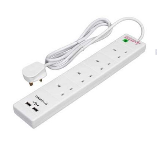4 Gang 2 mtr Surge Protected Extension Lead with 2 x USB Ports