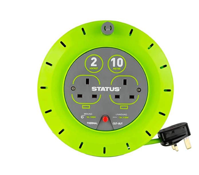 Status socket outlet with thermal out cassette reel is easy to use. Sockets comes all with their own two switch. 10 m reel length, 13 A rated. Heavy duty cable reel with re-settable safety cut-out. It is Ideal for the garage, workshop or home. Allow you to power electrical devices where no mains sockets are nearby.