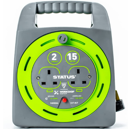 Status 15 Metre 13 Amp 2 Socket Cable Reel with Thermal Cut Out