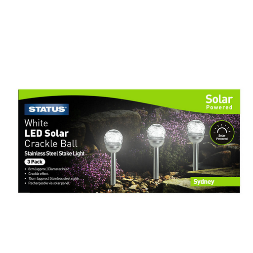 Status Syndney Crackle Solar Ball Light Pk of 3