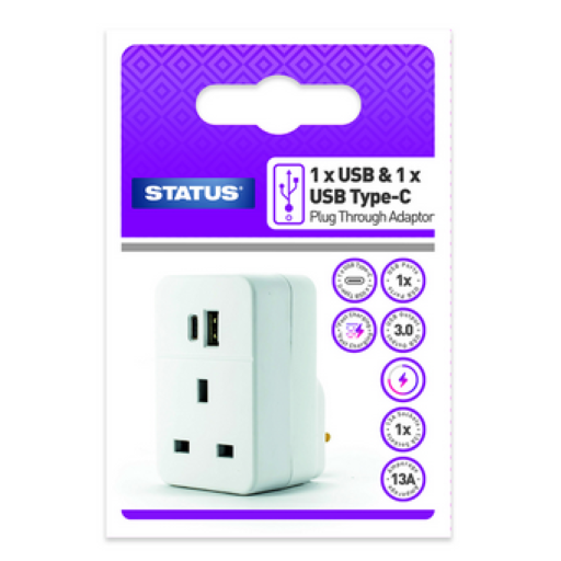Status USB A + USB C Charging Port Power Adaptor White Plug Through