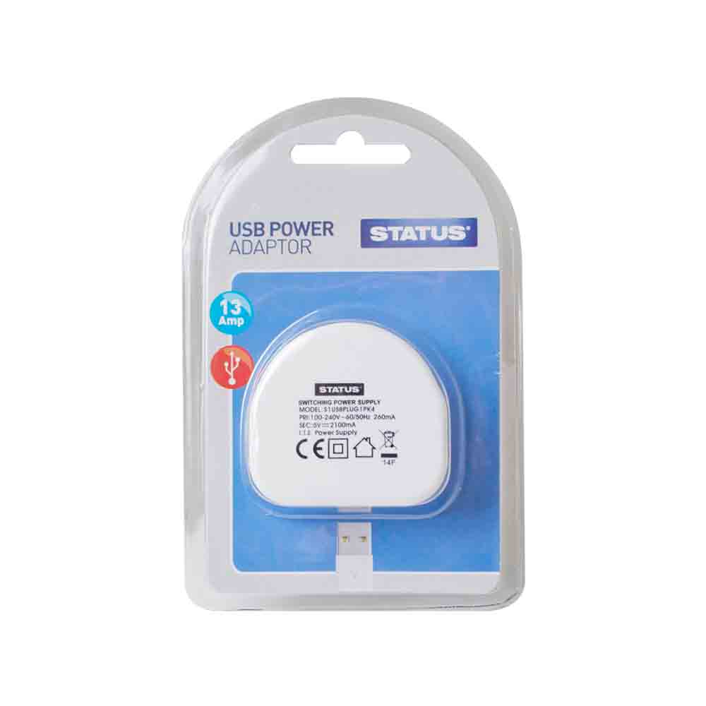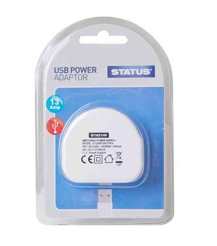 - USB Specification Input Voltage Range - 100v-240v Output: 5v D.C -2100mA max.