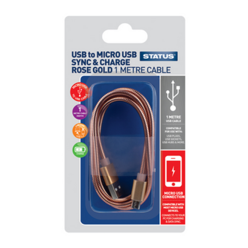 Status USB to Micro USB Rose Gold Cable 1mtr
