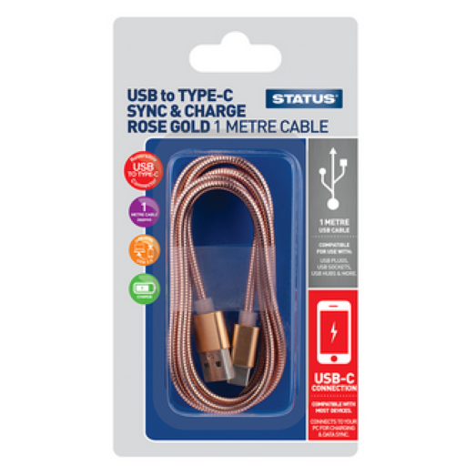 Status USB to USB-C Sync and Charge Cable Rose Gold 1mtr