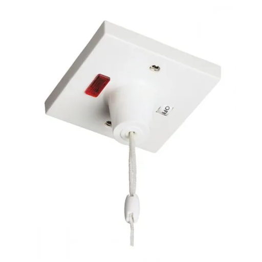BG 803 Ceiling Pullswitch 45A DP with Neon designed for safe electrical isolation of shower units in bathrooms.