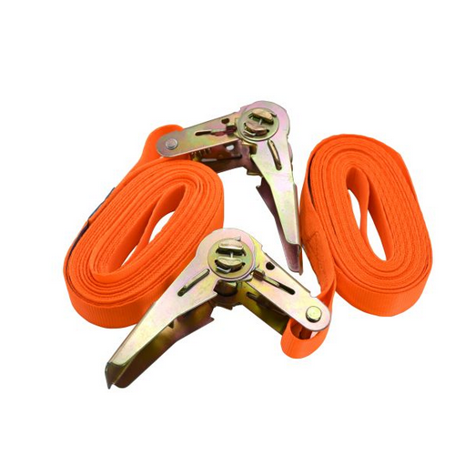 2 piece 5m x 25mm Endless ratchet straps, breaking strength 500kg, safe working capacity 250kg. Weather resistant nylon webbing.
