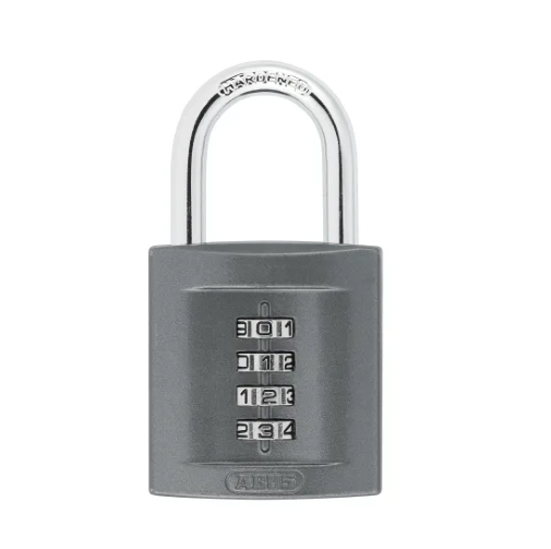 The ABUS 158 Series Combination Padlock with a solid die-cast zinc body and a hardened steel shackle. 3-digit (40mm), 4-digit (50mm), or 5-digit (65mm) resettable combination where you can set your own PIN.