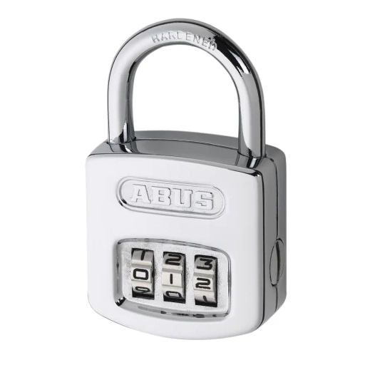 The ABUS 160 Series Combination Padlock with 3-digit (40mm) or 4-digit (50mm) resettable combination with a tough die-cast body for durable security.