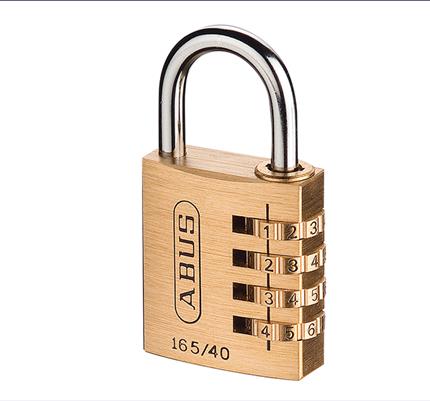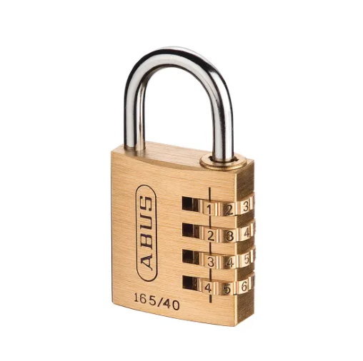 The ABUS 165 Series 40mm Combination Padlock with 4-digit resettable combination. It has a tough solid brass body and a steel shackle. Ideal for luggage, sports equipment etc. Low to medium security requirement where convenience of use is a high priority (e.g. schools, companies).