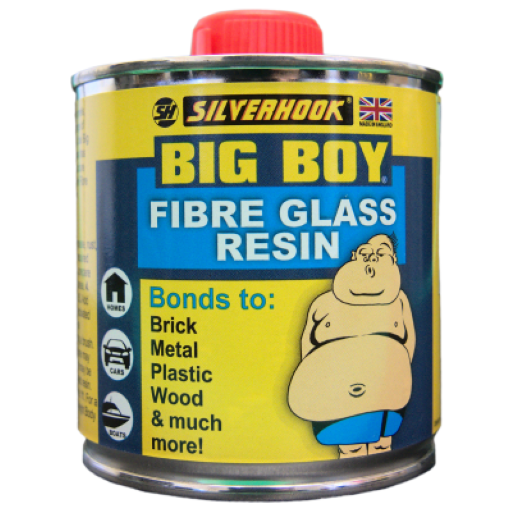 Big Boy Resin is ideal for repairing cracks, holes, splits, car panels, roofing, boats, furniture, guttering, and leaks, etc on a wide range of surfaces including brick, metal, plastic, wood, aluminium etc. Use Big Boy Resin with Fibre Glass mat of tissue. Once the fibre glass has been soaked with activated resin it will form a tough GRP structure which will permanently retain its moulded shape. When set, the fibre glass is resistant to oil, grease, and petrol and can withstand temperatures of up to 80 degrees Fahrenheit.