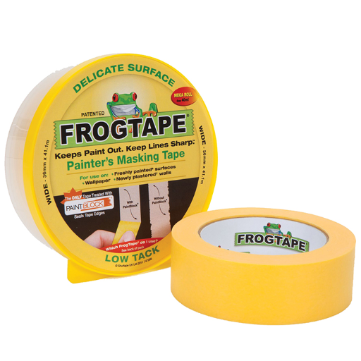Shurtape Delicate Surface FrogTape® is a low tack painter's masking tape for use on freshly painted surfaces, wallpaper and newly plastered walls.