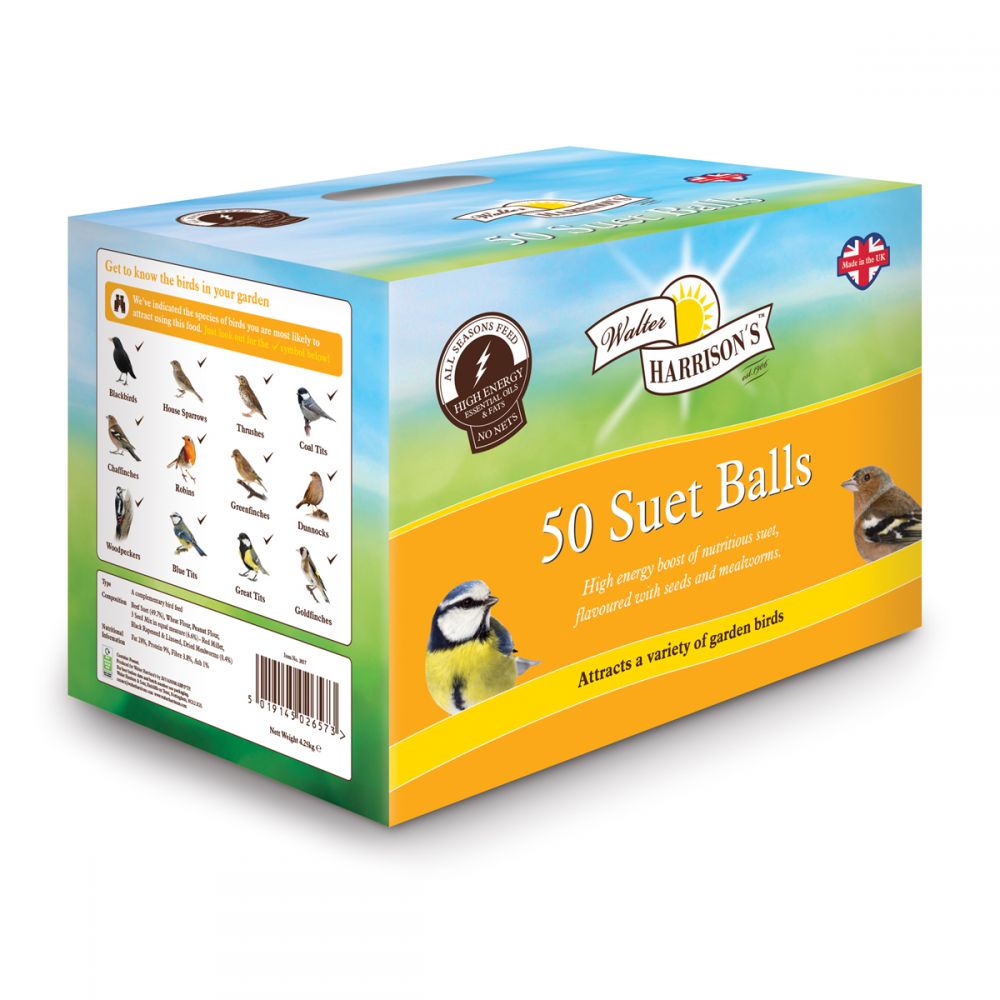 High energy boost of nutritious suet, flavoured with seeds and mealworms. Packed with energy and essential oils Suet Balls are 100% edible, meaning no waste and no mess. Can be fed all year round but are particularly beneficial during the Winter and Spring months when natural food is scarce. Will attract a variety of birds to your garden and can be fed from a Suet Ball feeder, a bird table or on the ground.