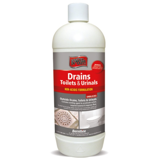 - Knockout drains, toilets & urinals special formulation is ready to use, and will break down the fats, grease and hair that commonly cause blockages or slow running wastes, leaving waste pipes clean and sanitised.