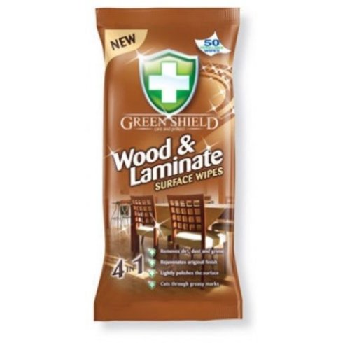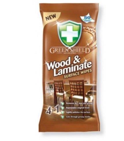 - Green Shield Wood and Laminate Surface Wipes remove dirt, dust and grime while lightly polishing the surface and rejuvenates the original finish.