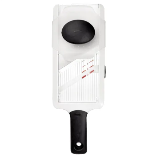 The Hand Held Mandoline can provide slices in three thicknesses using its high quality blades. It is simple to use on a cutting board, plate or hooked over a bowl and the clear surface shows the slices below. With its comfortable non-slip handle- your hands will remain well protected from the Blade and its dishwasher safe finish is ideal for daily use.