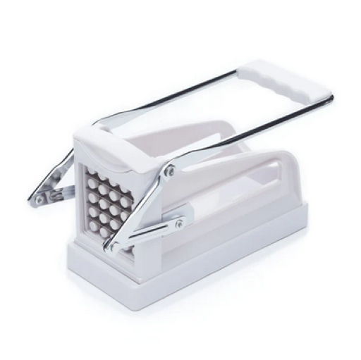 Cuts potatoes into chips in seconds! This handy potato chipper is also ideal for making carrot and other vegetable strips for crudités. Includes two sizes of blades for making small and large sizes, with replacement high quality stainless steel blades also available. Simple to use, just choose the blade, peel the potato or vegetable, place in the chipper and pull the lever arm to produce the chips. The suction base creates a firm grip while in use and all items are removable for easy cleaning.