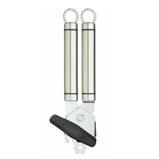 Kitchen Craft stainless steel heavy duty can opener, with a comfortable oval shaped handle and integral hanging storage loop.