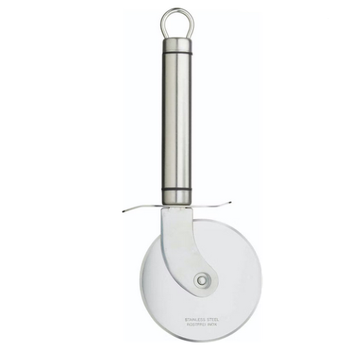 Kitchen Craft high quality stainless steel pizza cutter. Featuring a fully rotating blade and comfortable oval shaped handle, with integral hanging storage loop.