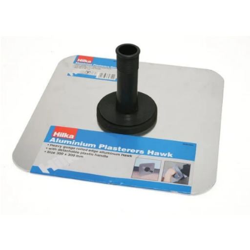 Heavy gauge rolled edge aluminium hawk with detachable plastic handle. Size 300 x 300mm.