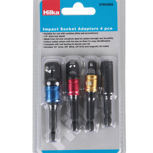 Suitable for use with cordless drills and screwdrivers 1/4" drive hex shank Made from chrome vanadium steel for added strength and durability Colour coded collars with the size on them for easy identification Complete with ball bearing to secure your bit Includes:-