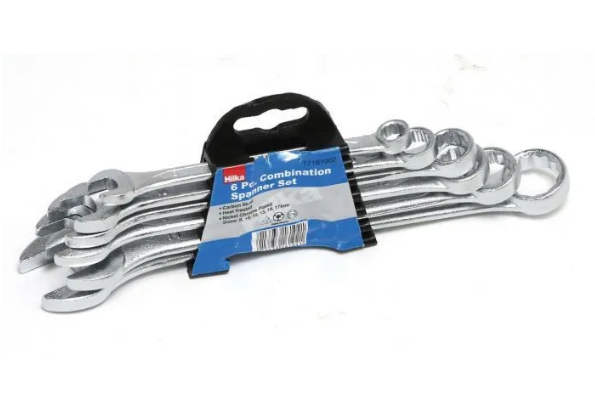 Drop forged carbon steel spanners fully heat treated. Sizes: 8, 10, 12, 13, 14, 15, 17mm. Packed in hanging rack
