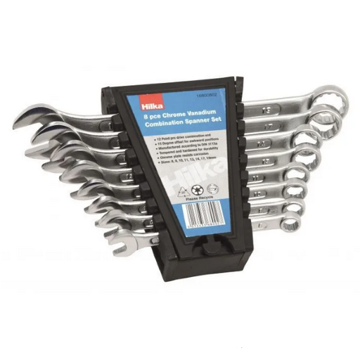 Tempered and hardened for durability with chrome plate that resists corrosion. 12 point pro drive combination end and 15 degree offset for awkward positions. Manufactured according to DIN 3113A.