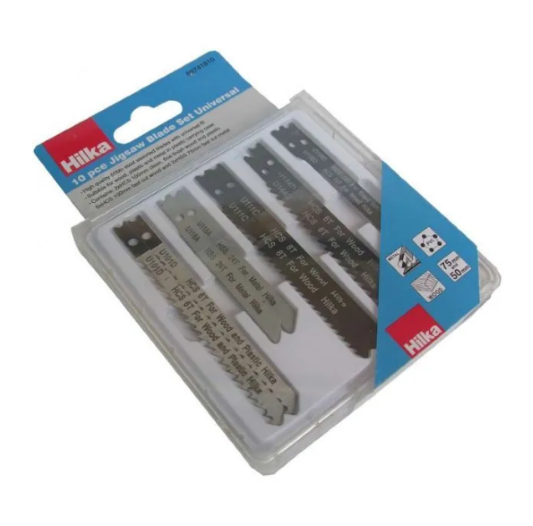 High quality 65Mn steel assorted blades suitable for wood, plastic and metal. Universal fitting. Packed in plastic carrying case.