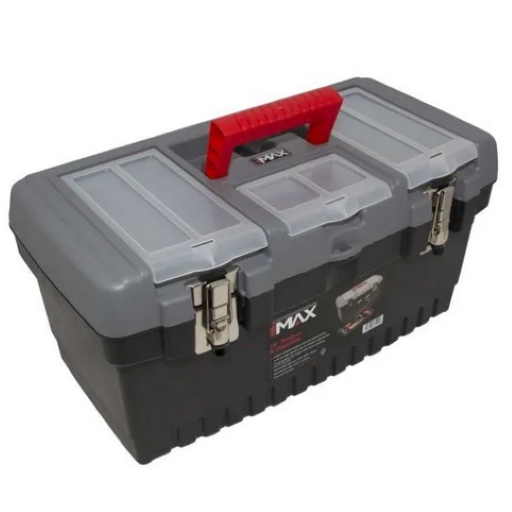 Impact resistant toolbox with two metal latches, three durable rear hinges and built-in padlock eye for security. In-lid storage and tote tray for efficient organisation.